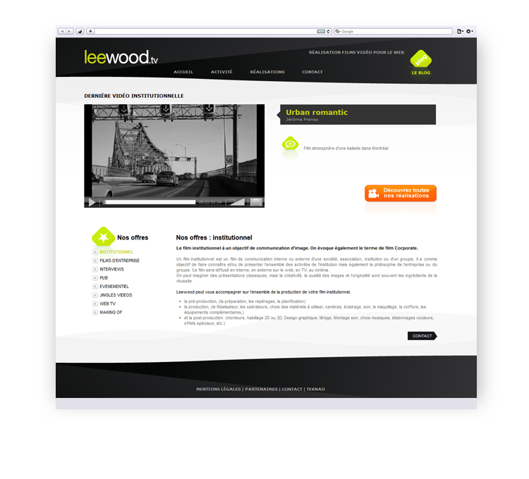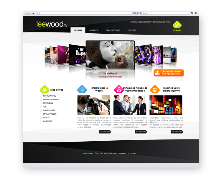 Leewood.tv est une société de production audiovisuelle située à Lyon. Au cœur du Rich Media, Leewood.tv s'adresse à toutes les entreprises et les collectivités ayant des projets de communication.