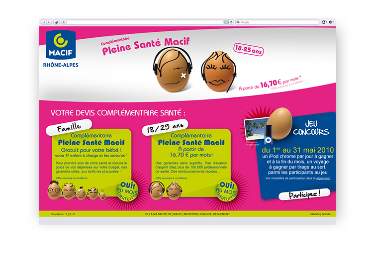 Site internet à l'occasion du jeu concours complémentaire pleine santé Macif.