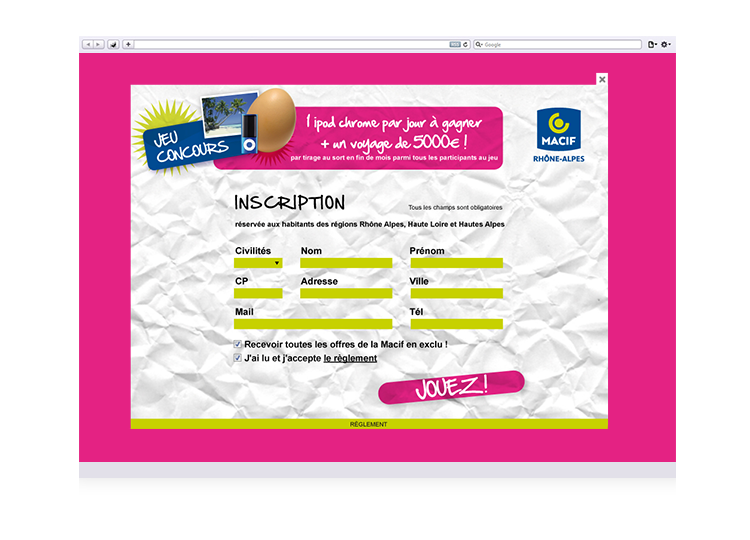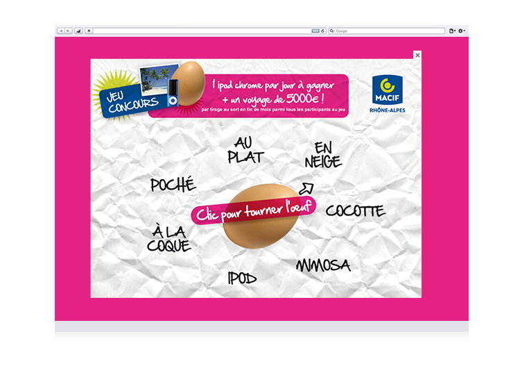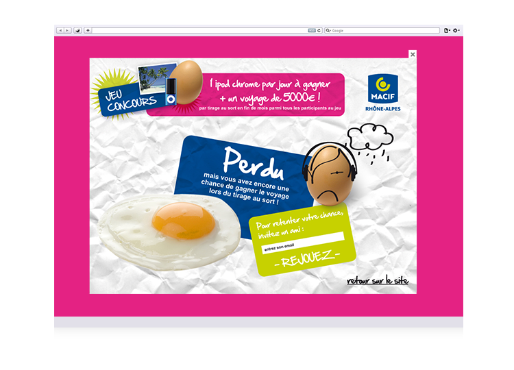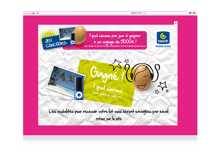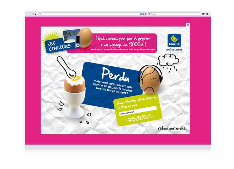 À partir de la campagne publicitaire, réalisation graphique du site et des différents écrans du jeu concours.