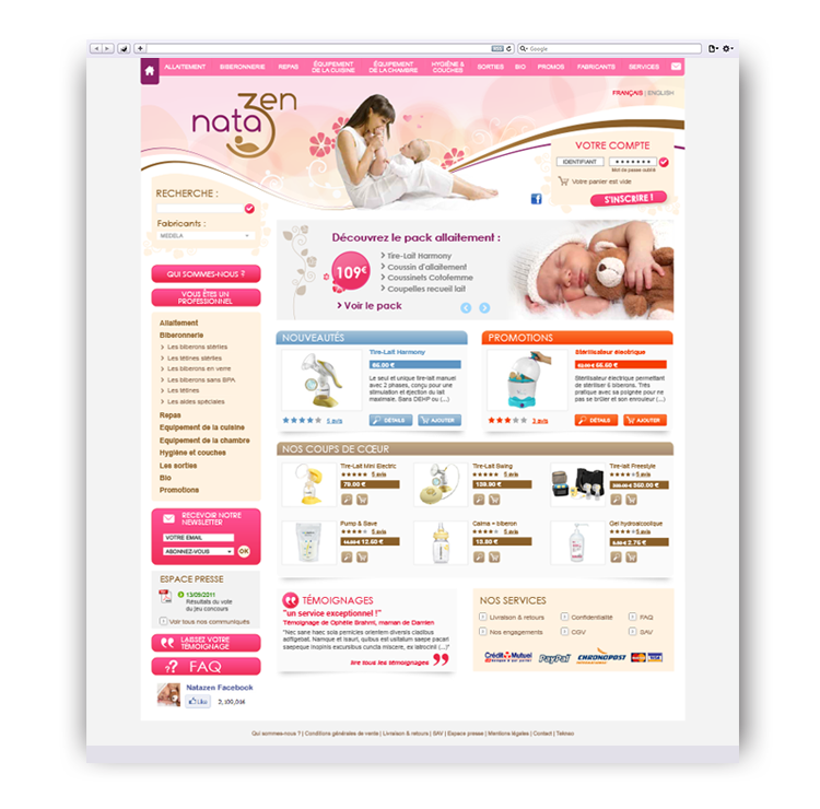 Natazen, dédié aux bébés de 0 à 12 mois, propose aux parents des produits destinés aux professionnels utilisés dans les maternités et dans les services de néonatalogie.