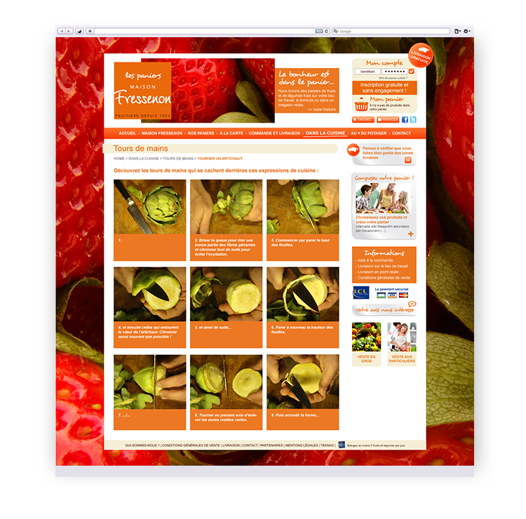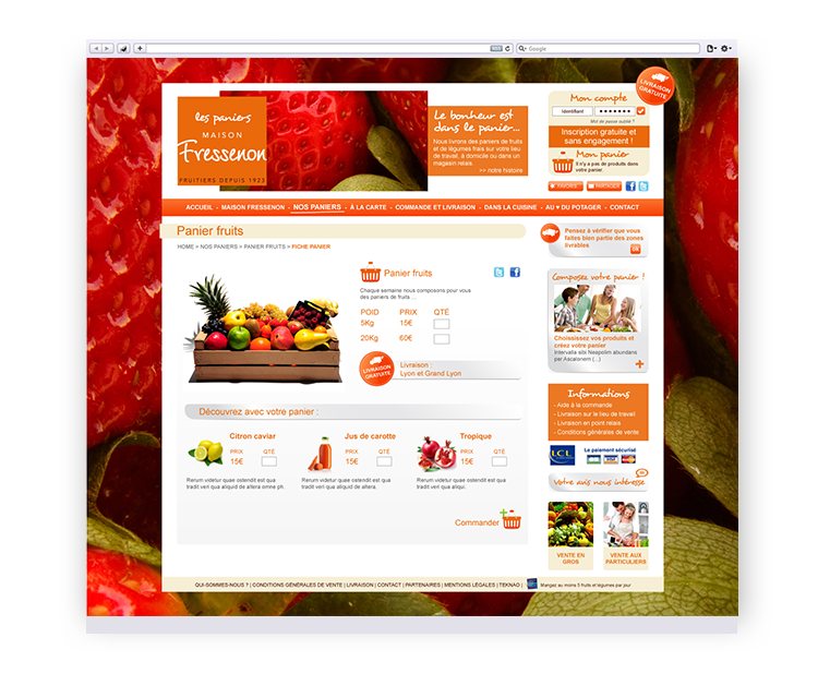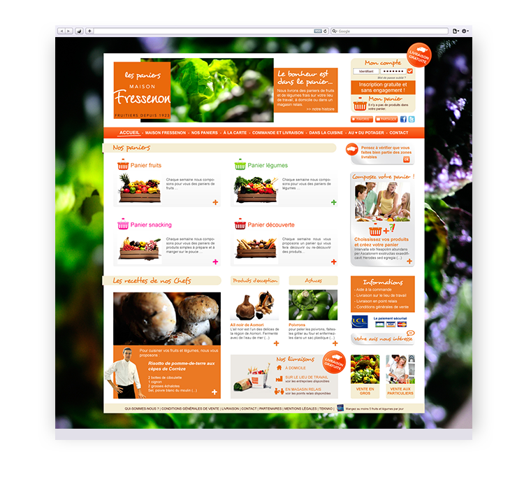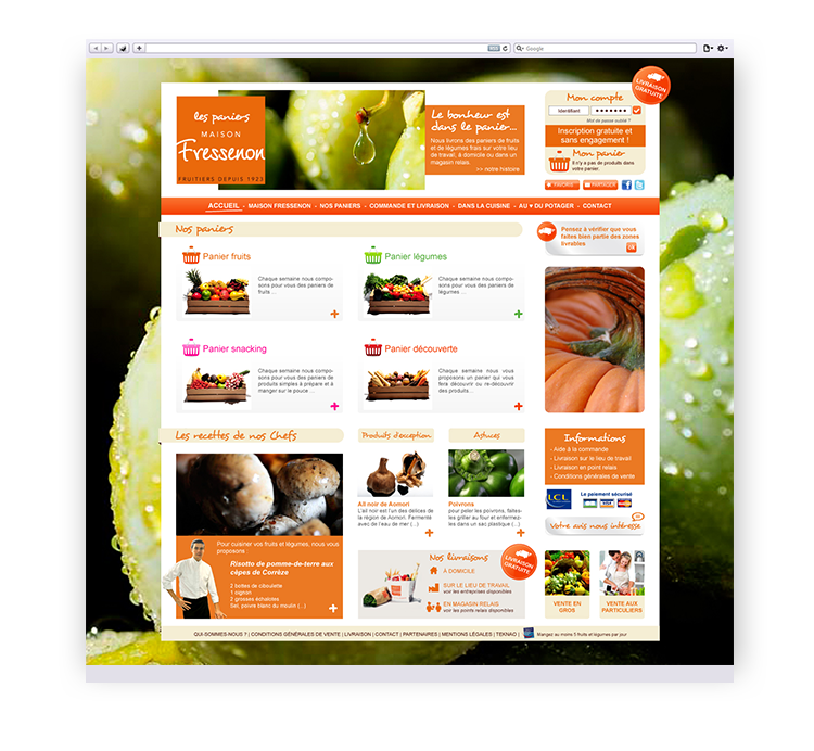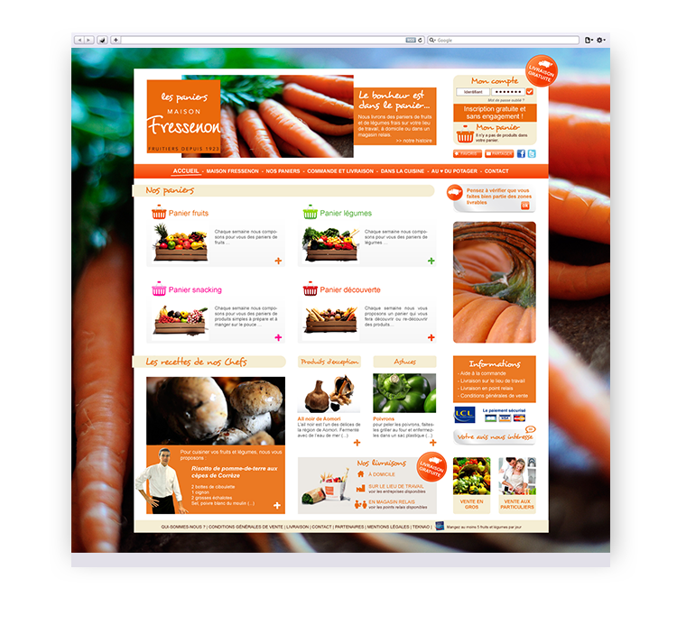 Paniers Fressenon livre des paniers de fruits et de légumes frais au travail, à domicile ou dans un magasin relais.
