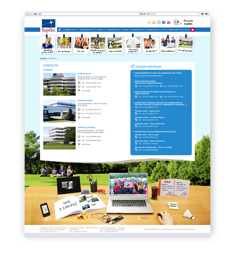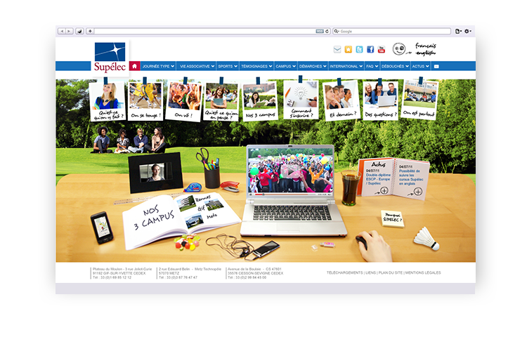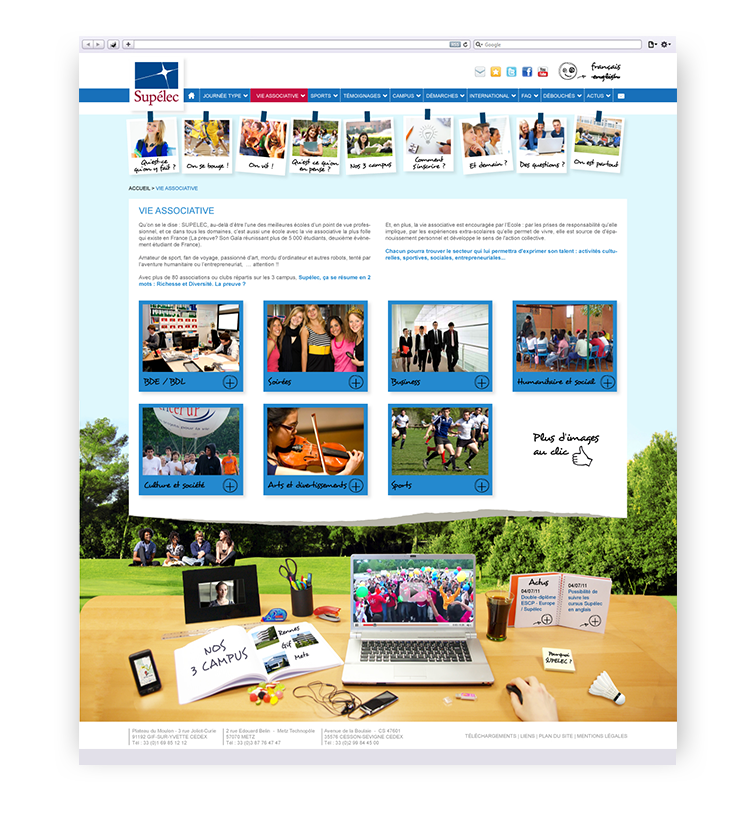 Site internet du campus de Supelec présentant la vie quotidienne des étudiants ingénieurs.